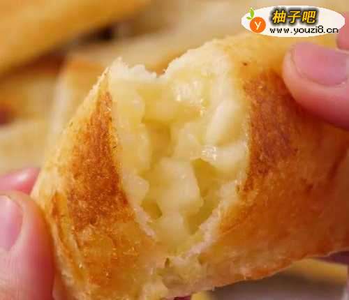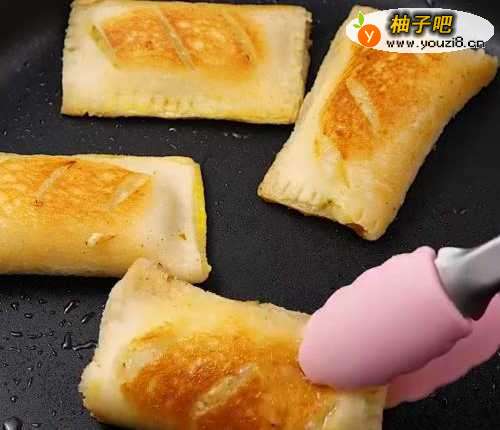 7锅中下少量的油,把包好的苹果派摆进去,用小火煎至两面金黄色即可。