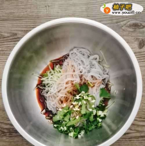 6最后,放入蒜末和香菜段,拌匀就OK了。