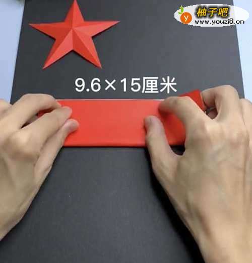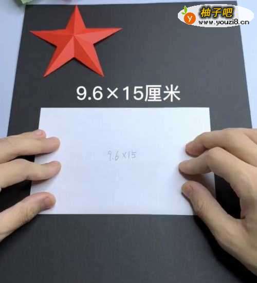 准备一张合适的红色纸张,长为15厘米,宽9.6厘米;如图所示