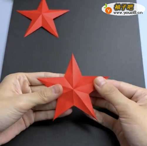 5将纸张打开,立体的五角星图案就出来了;如图所示。