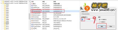 5然后将第5行的Characteristics双击,将值29修改为9,确定。