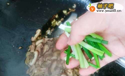 6:倒入食盐和生抽,放入香葱段,翻炒均匀即可。