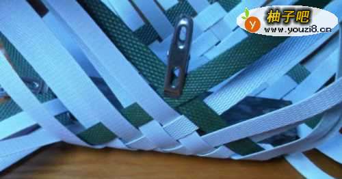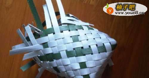 4然后开始收口,将多余的长条都塞进篮子外端,如图所示。