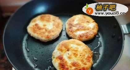8一面煎至金黄后煎另外一面,把饼两面煎至金黄即可。