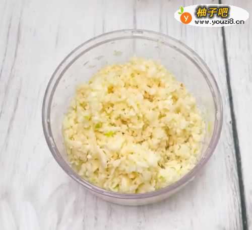 将大蒜剥皮清洗干净,切成蒜蓉,(可用手动机器)