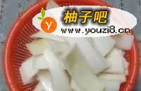 白萝卜洗净,切段后用刀削皮(皮要稍微厚点)