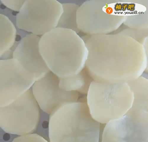 将土豆洗净去皮切成块,放锅中蒸熟。