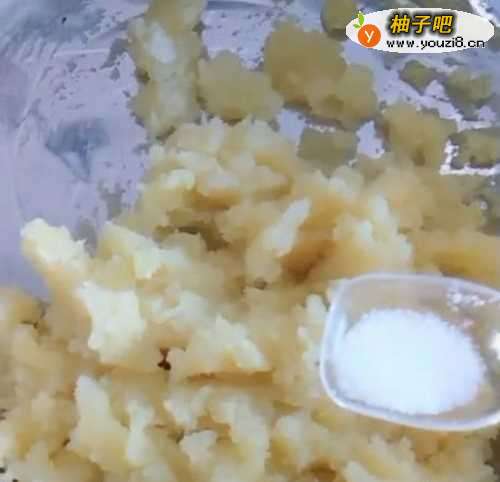 3放入适量盐,再加少许糯米粉。揉成面团。