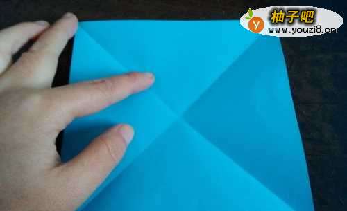 先把彩纸的两角对折,然后再把四个角向内折。
