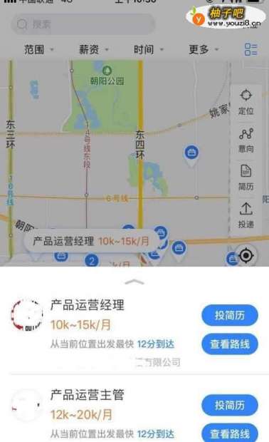 9根据自己的选择,投递简历,可以查看该职位与你的距离和乘车路线。