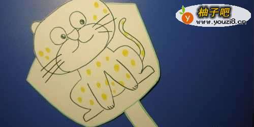 6最后,用剪刀把白色卡纸上可爱的小花豹扇子的图形剪出来,这样一把可爱的小花豹扇子就做好了,如下图所示,大家也来做做吧。