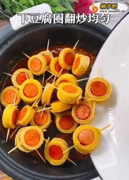火腿肠和百叶是很多人都爱吃的,那么今天小编就给大家介绍一种新吃法,一起来学吧。