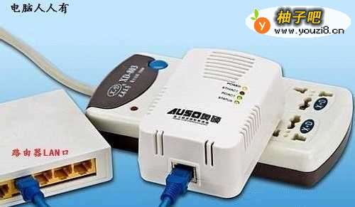 5然后,在远端将电力猫B插入电路之中(同一个电力表范围内)→再将电力猫的网口插上网线,接驳在用网客户端上(比如电脑)。从而完成一个通讯传输的完整回路。