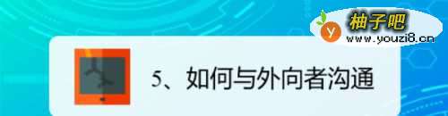 4内向者的一大特征便是不善与他人沟通,这往往使得管理者与内向者的交谈显得尤为困难,沟通效率低下。是以,与其想通过沟通了解内向者,不如先通过观察其工作中的点滴,通过内向者在日常工作当中的细节表现来了解他,了解内向者的喜恶、兴趣、习惯等等,因为只有对内向者有所了解,才能在后续的沟通过程中找到好的切入点,把握好的沟通节奏,从而取得好的沟通效果。