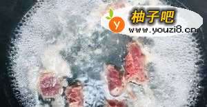 3锅中加入冷水,烧开后放入排骨,煮1分钟后捞出洗净后备用。