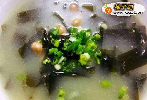 7汤熬好后,加入适量盐和鸡精调味,关火。汤舀入汤碗里,撒葱花。
