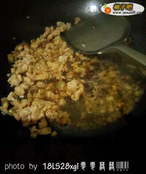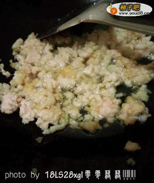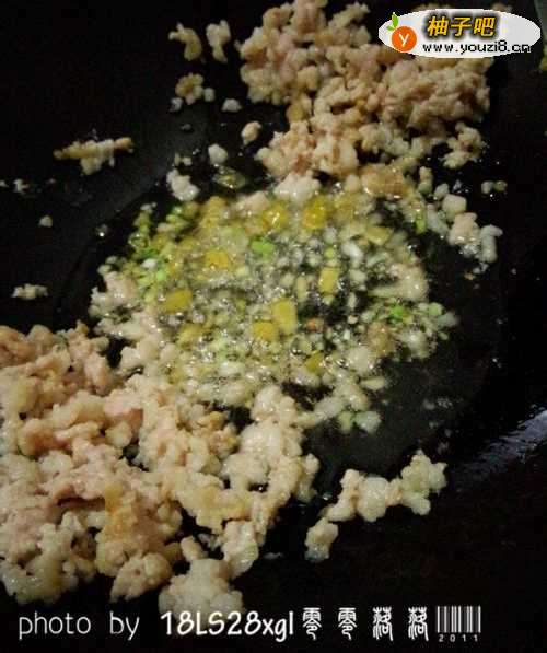 4锅内倒油烧热,放入猪绞肉小火煸炒;