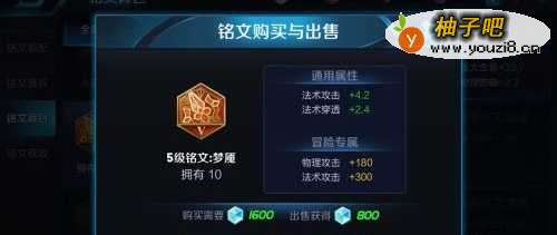 3红色十个梦魇:梦魇是增加法术攻击和法术穿透的,基本每个法师都会搭配。