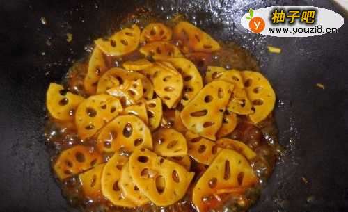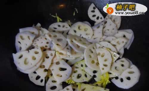 44.倒入切好的莲藕,快速翻炒;