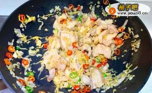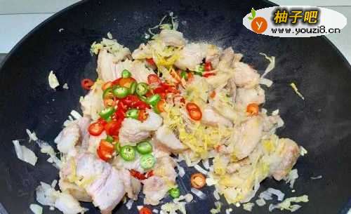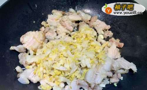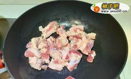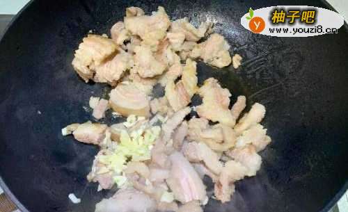 2一点油加热炒肉片至略焦黄,炒时加些料酒增香
