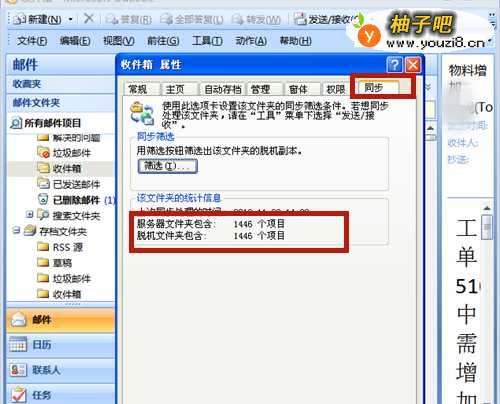 6除了以上方法外,我们还可以在【属性】对话框中,选择【同步】,直接查看邮件的总数量。