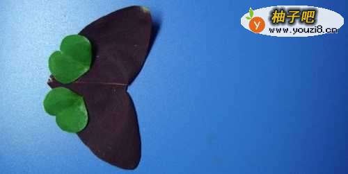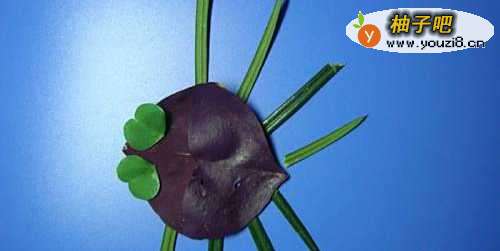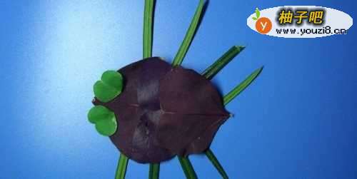 6然后拼装可爱的小蜘蛛的尾部,由一片三角形树叶所组成。摆放宿忌争的位置,如下图所示。这样可爱的小蜘蛛的场景画就做好了。