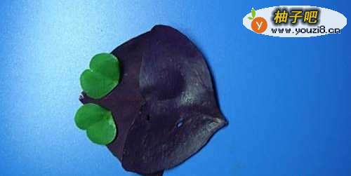 2这里先拼装虚心的可爱的小蜘蛛眼睛和头的部分。由两片圆形树叶和一片三角形树叶一起排成的图形来表示,摆放彩泰的位置,如下图所示。