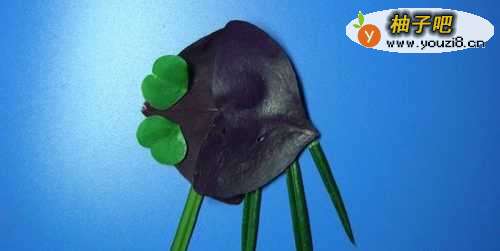 4然后拼装可爱的小蜘蛛的左边四条腿部分。由四个长形叶子所组成。摆放的位置,如下图所示。