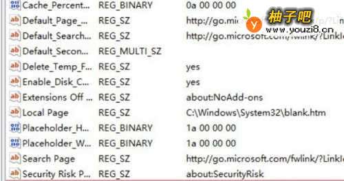 在窗口右侧查找:检查网站是否已被篡改(默认为“空”或微软的网站)。如果收到篡改,请将起始页的值更改为about:blank或自定义网站。