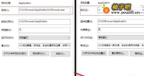 5这通常适用于三向浏览器(uc,google等),在这里,以UC浏览器为例,在桌面上找到UC浏览器快捷方式,右键单击 - 属性,在这里,您可以在浏览器快捷方式中看到目标栏,并且快捷方式(2)显然已添加到URL中。删除此URL并单击“确定”。