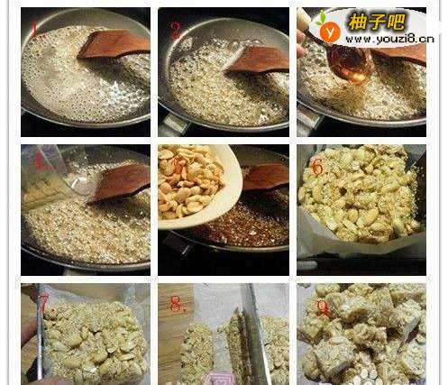 8等到只有一点余温的时候,变硬之前,用刀切成小方块;