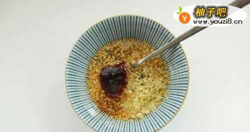 6与另一半蒜蓉混合,加入生抽2汤匙,蒸鱼豉油2汤匙,蚝油1汤匙,适量糖提鲜。拌均匀