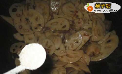 6莲藕快熟时加入适量蚝油炒匀