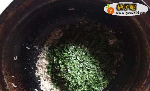 33,沥水完以后就把韭菜切得很短很短的那种,切好以后和粉条放在一起,鸡蛋也是打在里面生着,这样的话再放些盐饺子馅就做好了。