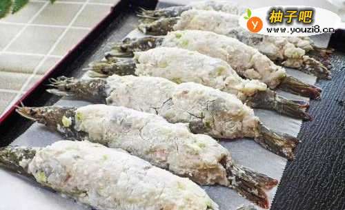 3虾剥壳去肠泥,先沾上少许面粉备用。