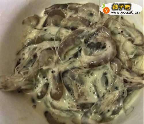 新鲜的小虾用清水洗干净,控干水分,加入五香粉,花椒粒,料酒,姜,盐搅拌一下,腌制20分钟。