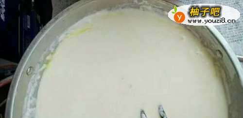 4调面粉,在面粉中加入水和鸡蛋,一定要调好不能太厚也不能太稀