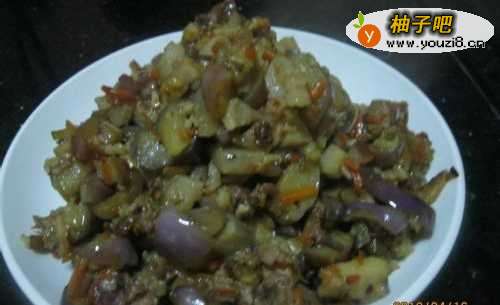 茄子抓干水一起炒,加点盐和生抽盖锅盖用小火焖到茄子变软,不要加水啊。然后开中火,把油逼出来,就香香的可以出锅了。全程不可加水,要用小火有耐性地慢慢焖
