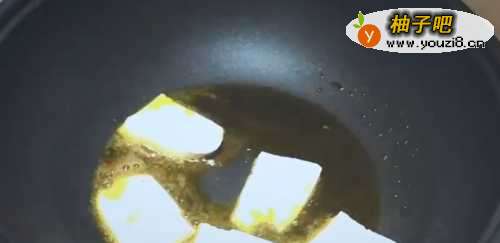 6下面煎豆腐,先倒入菜籽油