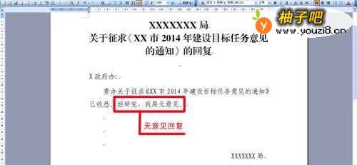 5无意见回复时,最后写上“经研究,我局无意见。”