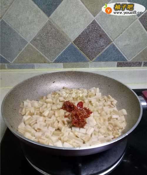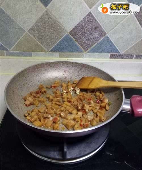 7莲藕快熟时,调入香辣牛肉酱;