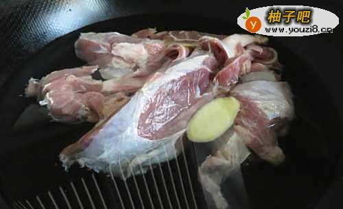2锅中加半锅水,放入牛肉、姜片和料酒1勺煮至出来浮沫捞出