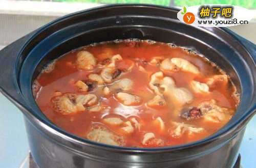 5加入适量酱油,水,盖上锅盖大火煮开后转小火慢慢的炖至肥肠软烂。