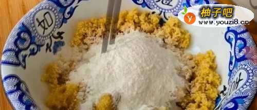 2、时间差不多时,将小米端出来,用筷子搅散后倒在一个大碗中,打入1个鸡蛋,加入2克十三香,2克精盐,2克的小苏打,再逐渐的倒入面粉,面粉的多少要根据小米的多少而定,没有具体的要求,然后将它们搅拌均匀,再揉成一个不粘手的面团。
