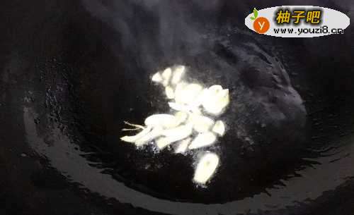 3开火,锅烧热之后放入少许油,油热之后把蒜瓣放进去煸香,香味出来之后吧冬瓜片倒进去翻炒。
