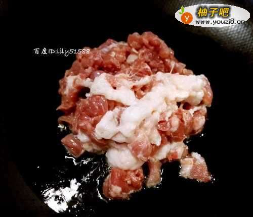 6把锅烧热放油,放入瘦肉煸炒出油。