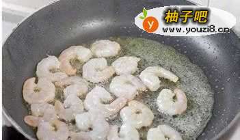 3热锅热油,放入虾仁大火快炒至整体颜色变红,熟了的虾仁盛出放凉备用。