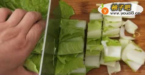 3这时候,我们再加入刚才切好的杭白菜;