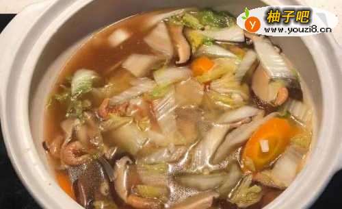 用虾米和香菇的香味让焖煮后的白菜汤汁变得鲜甜,加入沙茶让整道菜多一层香气。