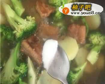 5煮5分钟以后加适量的食盐和匹配分量的鸡精。